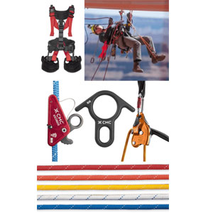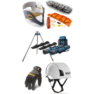 Arnés de seguridad, poleas, mosquetones, ascensores y descensores, cuerdas, trípodes, cascos, camillas y guantes